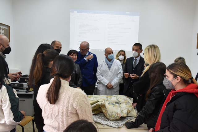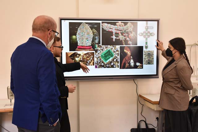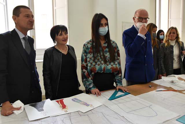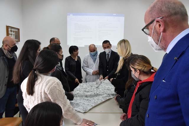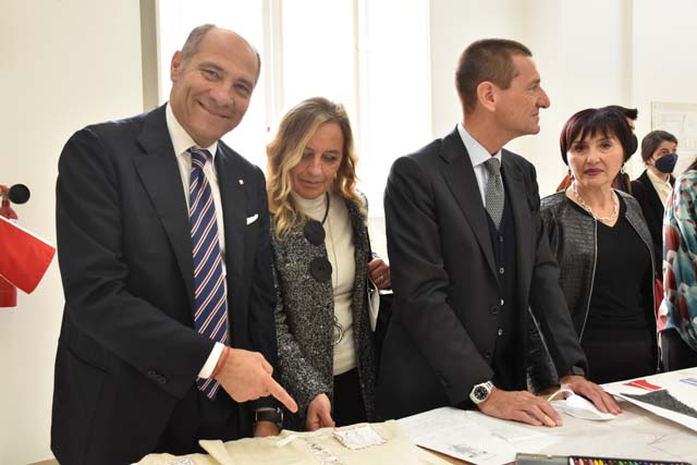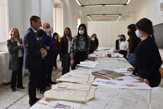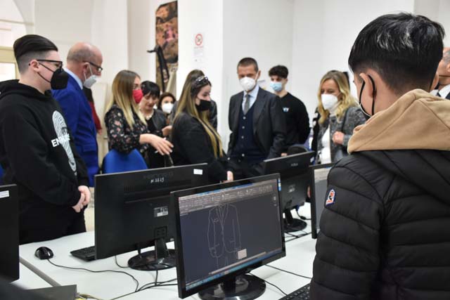 La delegazione ha visitato i laboratori di progettazione e produzione dei manufatti di moda realizzati negli anni dall’Istituto e dall’ITS Mia Moda Campania apprezzando, inoltre, gli elaborati progettuali proposti da alcuni studenti.