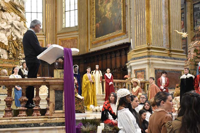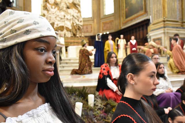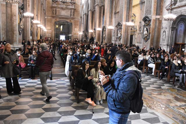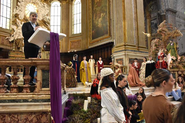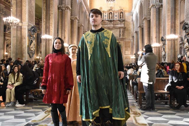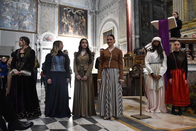 È stato presentato, nella splendida cornice del duomo di Napoli, alla presenza dell’arcivescovo don Mimmo Battaglia, il presepe vivente in abiti d’epoca realizzato dall’”Istituto “D’Este Caracciolo” di Napoli. L’evento, dal titolo “Qui non si sente altro che il caldo buono” è stato fortemente voluto dal dirigente scolastico, la dott.ssa Giovanna Scala, ed è inserito nel cartellone di eventi messo a punto dall’archidiocesi di Napoli “Note di bellezza per raccontare un prodigio”, coordinato da Mauro Maurizio Palumbo, artista e docente all’Accademia di Belle Arti di Napoli.