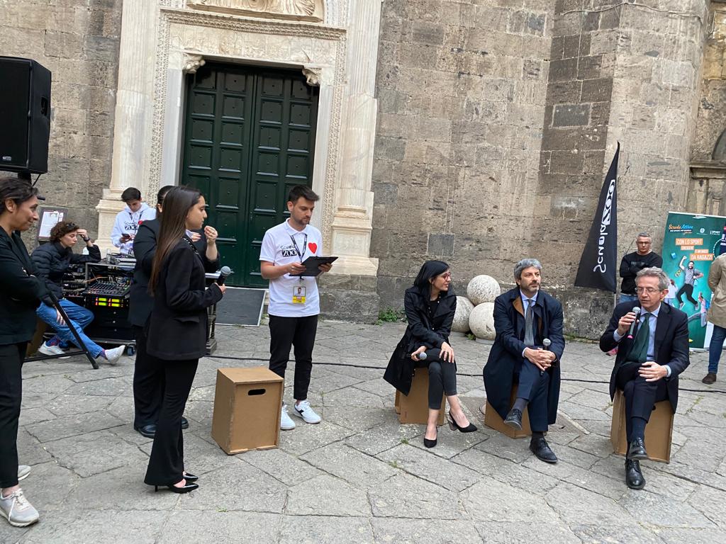 Gli studenti dell’Isabella D’Este Caracciolo presenti al Neet Working Tour presso il Maschio Angioino dialogano con il Presidente della Camera Fico, il Ministro Dadone, il Sindaco Manfredi e con l’Assessore Marciani del loro futuro lavorativo .
