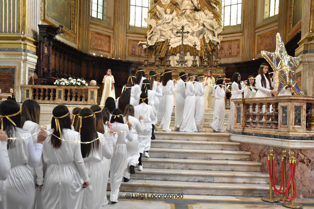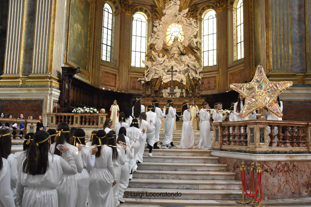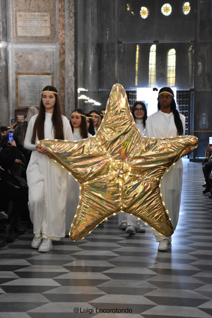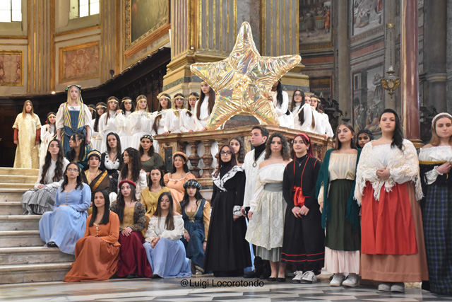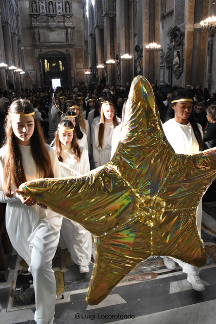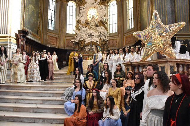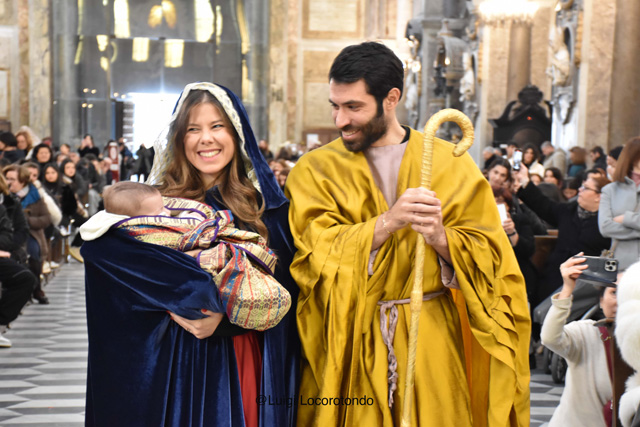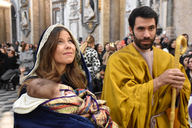 Il #Presepe Vivente dell’Isabella d’Este Caracciolo, dirigente scolastico dott.ssa Giovanna Scala, al #Duomo di Napoli con 160 figuranti e con la natività rappresentata dalla Consigliera Comunale @Alessandra Clemente, il marito e il bimbo di pochi mesi.